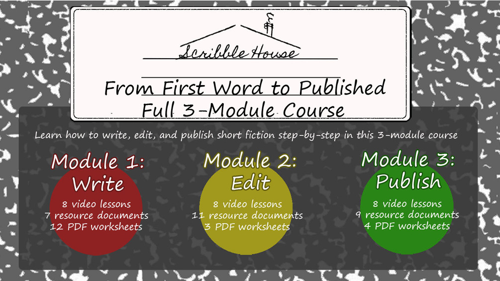 All 3 modules (24 lessons total) of the course, from generating story ideas through writing, editing, and publishing